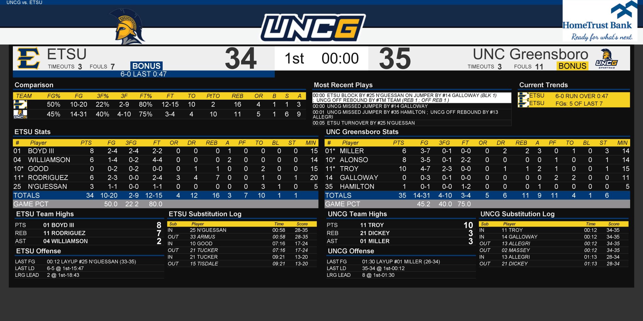 el juego tuvo cuatro cambios de ventaja y dos empates, mientras que ETSU tuvo
